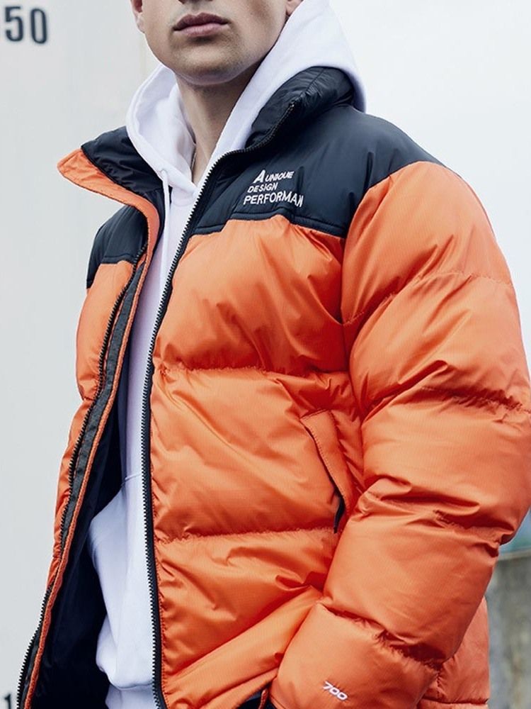Mid-length Hooded Color Block Zipper Herr Dunjacka