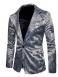 Notched Lapel Slim Fit Pocket Print Blazer För Män