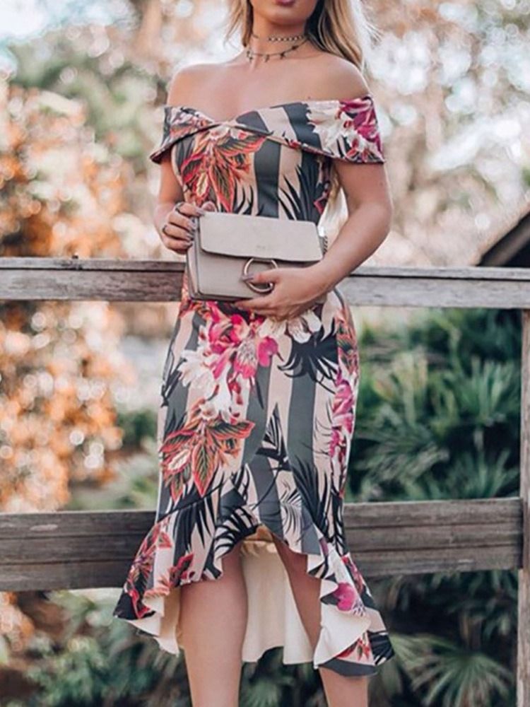 Off Shoulder Asymmetric Elegant Cold Shoulder Damklänning