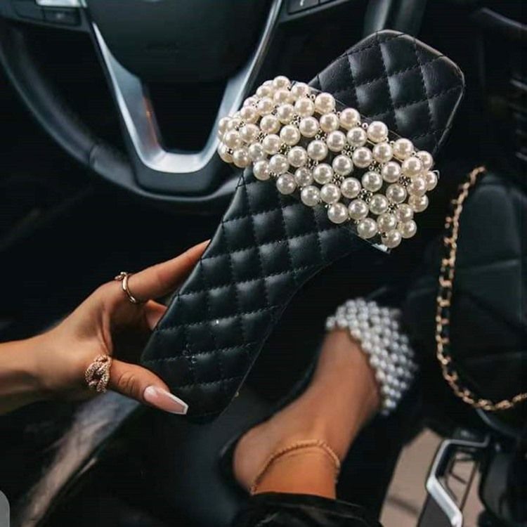 Pärlor Slip-on Flat Med Tofflor För Kvinnor