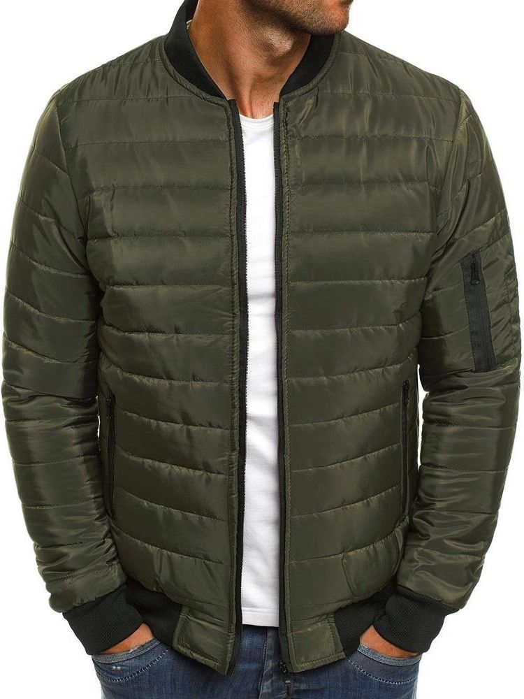 Patchwork Color Block Standard Dragkedja Casual Dunjacka För Män