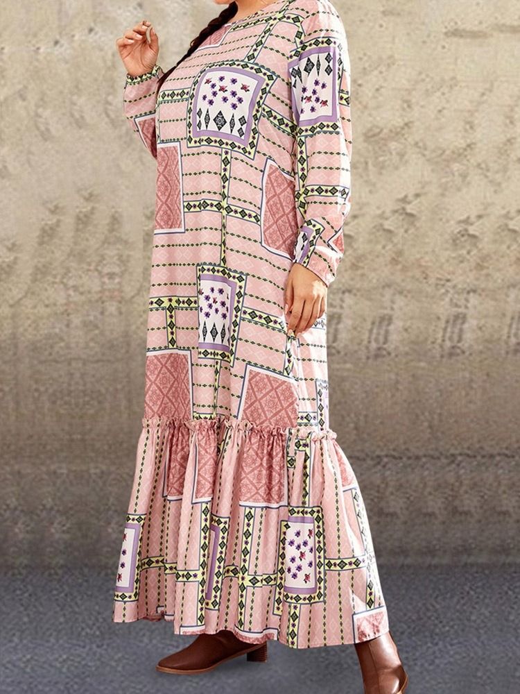 Patchwork Golvlång Långärmad Expansionströja Damklänning