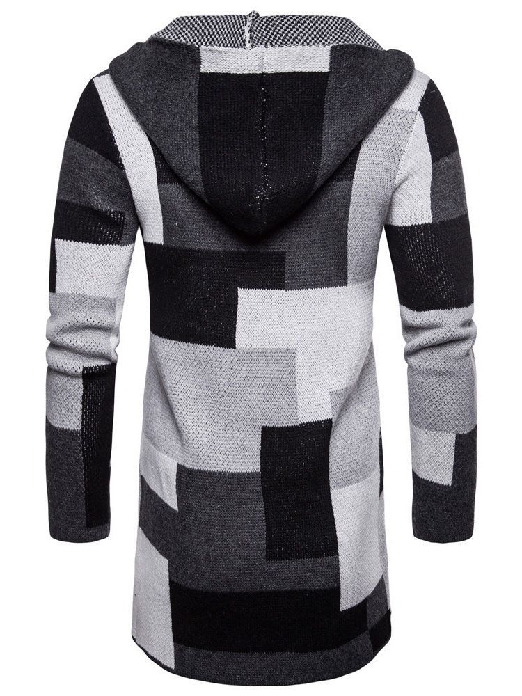 Patchwork Mid-length Hooded Mens Winter Cardigan Tröjor