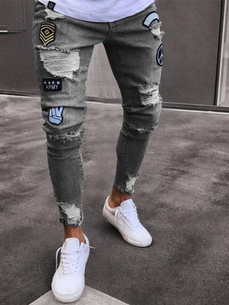 Pencil Pants Appliques Mid Waist Men's Casual Jeans