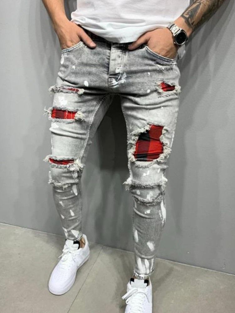 Pennbyxor För Män Color Block Tassel Mid Waist European Jeans
