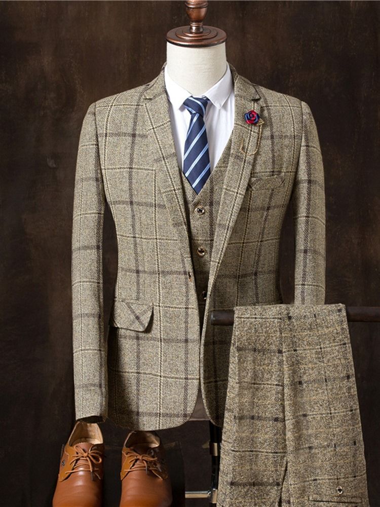 Plaid Three Pieces Plaid Vogue Slim Herrdräkt