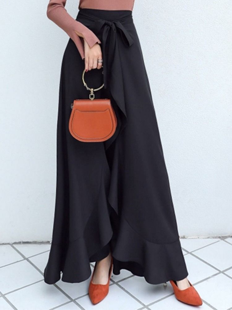 Plain Asymmetric Women's Slim Full Length Culottes Casual Pants