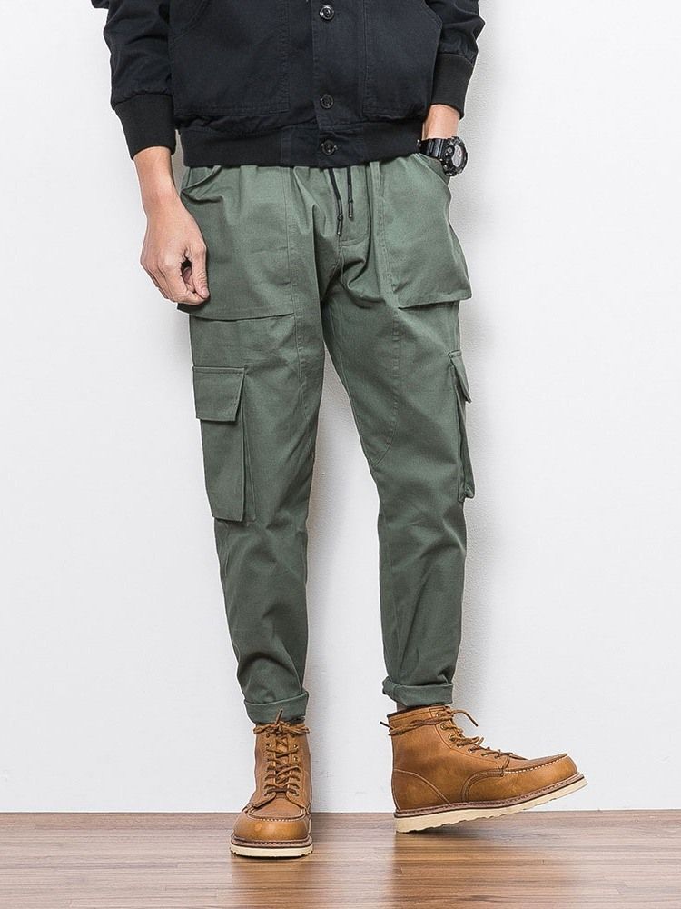 Plain Color Pocket Overall Lace-up Men's Casual Byxor