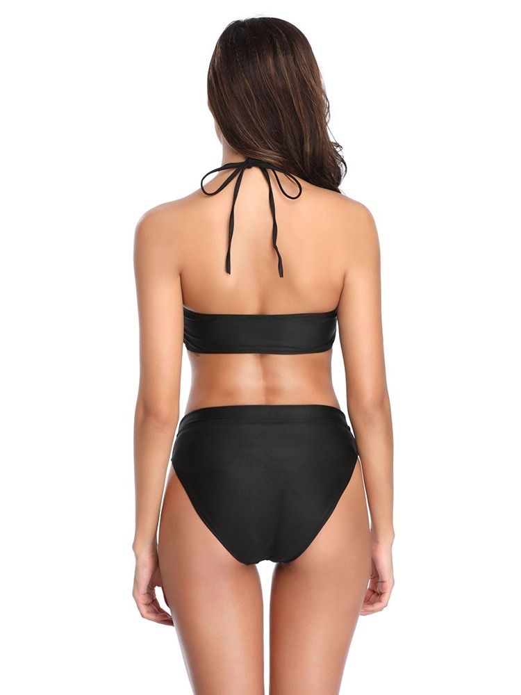 Plain Lace-up Hollow Sexig Bikini För Kvinnor