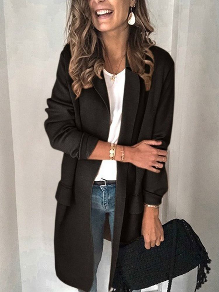 Plain Långärmad Notchkavaj Höst Regular Casual Blazer För Kvinnor