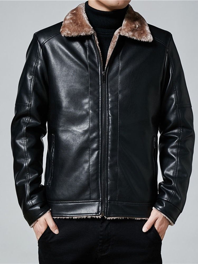 Plain Lapel Standard Slim European Leather Jacket För Män