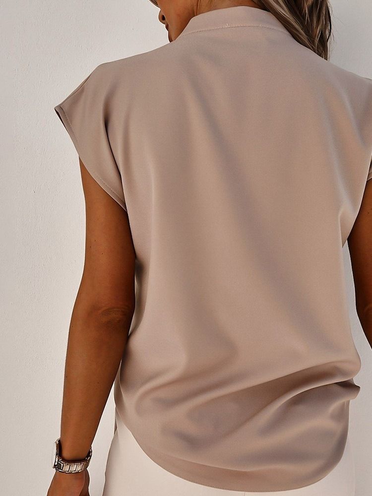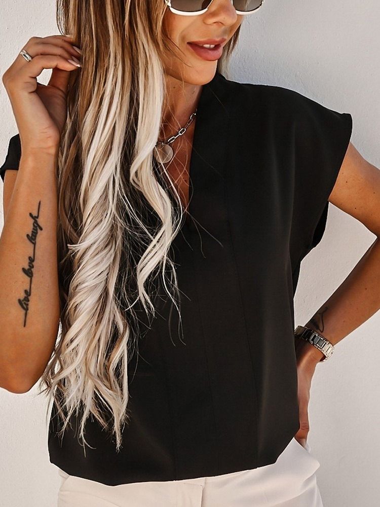 Plain Patchwork Regular Standard Kortärmad Damblus