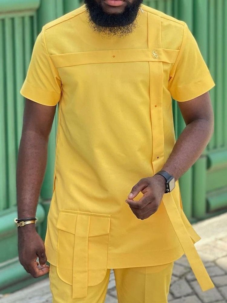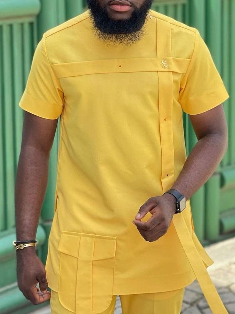 Plain Pocket Casual Herrsmal Skjorta