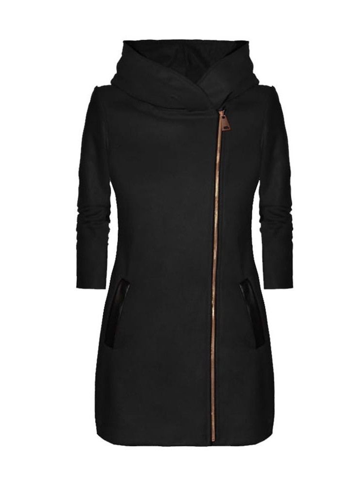 Plain Regular Zipper Långärmad Hoodie För Kvinnor
