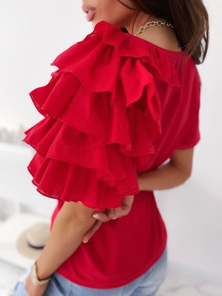Plain Round Neck Standard Loose Office Dam T-shirt