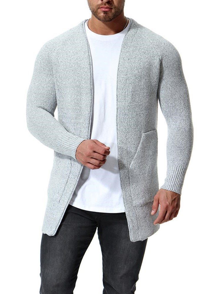 Plain Slim Mens Cardigan Med Fickor