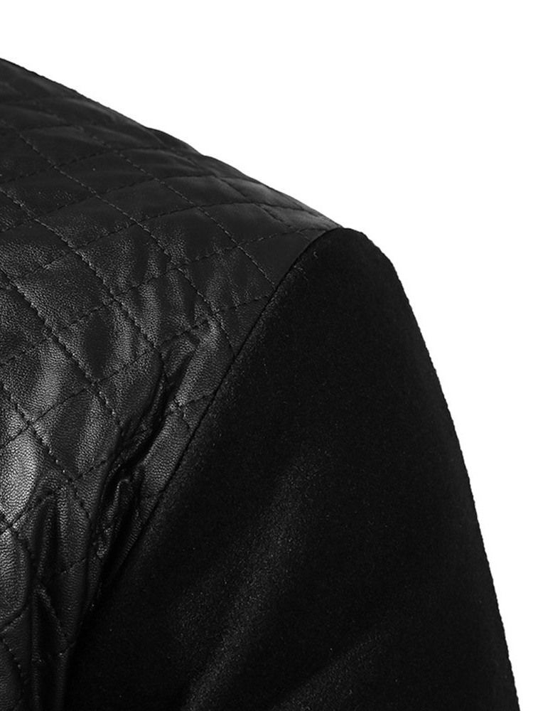 Plain Stand Collar Patchwork Zipper Herrjacka