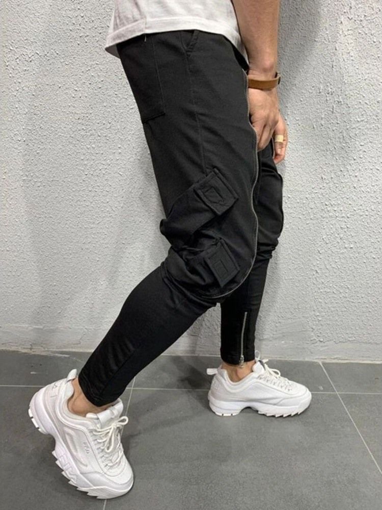 Plain Zipper Baggy Lace-up Men's Casual Pants