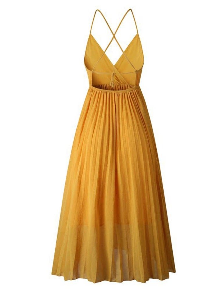 Plisserad Ärmlös Söt A-linjeklänning I Mitten Av Vaden