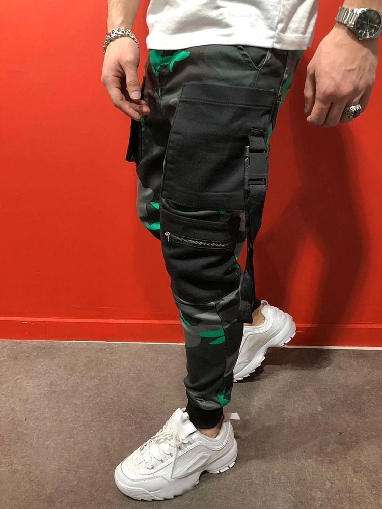 Pocket Camouflage Mid Midja Four Seasons Herrbyxor