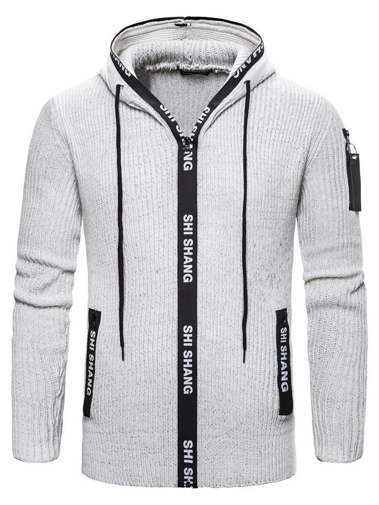 Pocket Standard Hooded Zipper Men's Slim Sweater