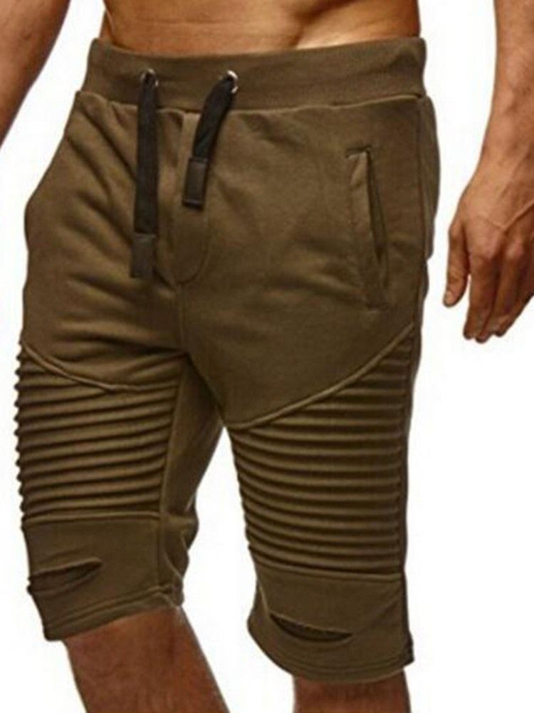 Pocket Straight Stripe Lace-up Mid Waist Men's Casual Byxor