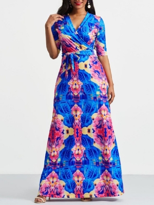 Print Golvlång Ärmlös A-linjeformad Midiklänning Med Hög Midja