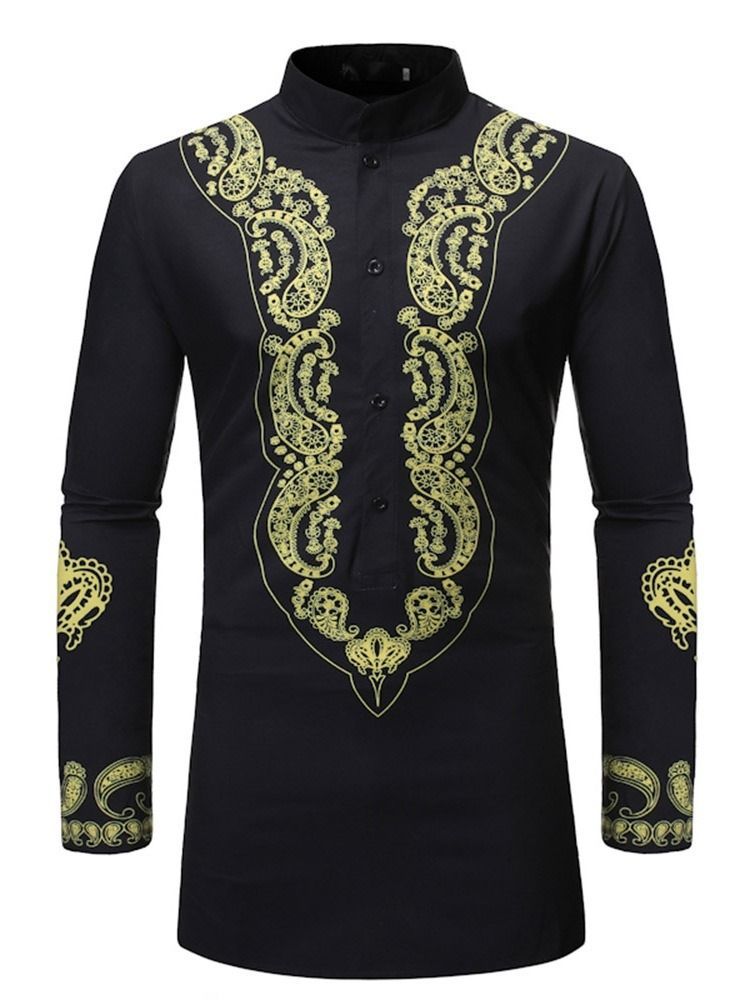 Print Stand Collar Geometric Slim Slim Shirt För Män