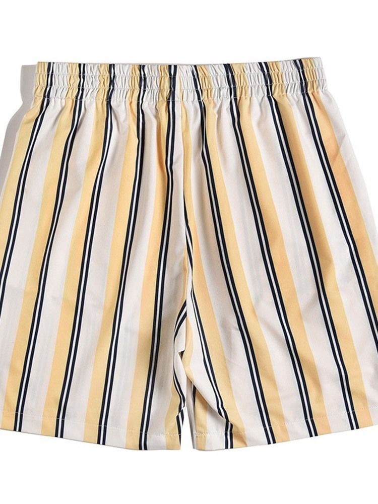 Print Stripe Loose Elastics Casual Herrshorts