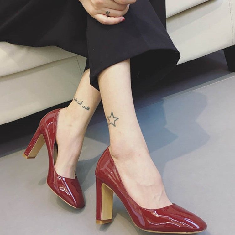 Pu Slip-on Square Toe Chunky Heel Pumps För Kvinnor