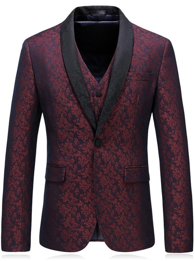 Red Printed Shawl Collar Mens 3 Pieces Suits