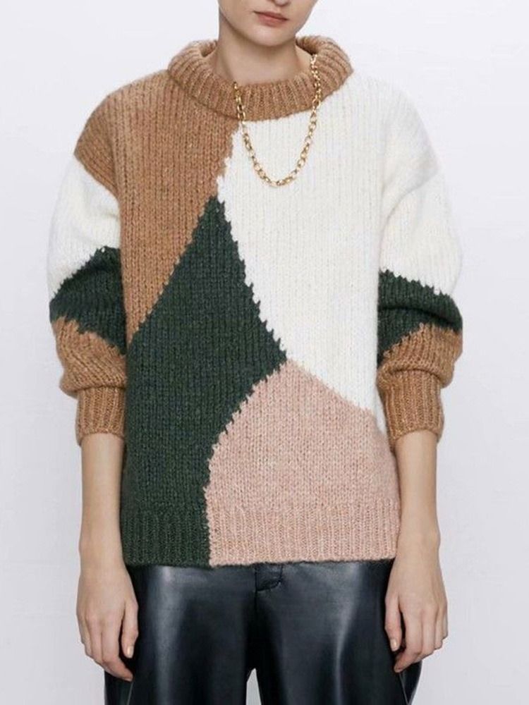 Regular Color Block Loose Geometric Standard Tröja För Kvinnor