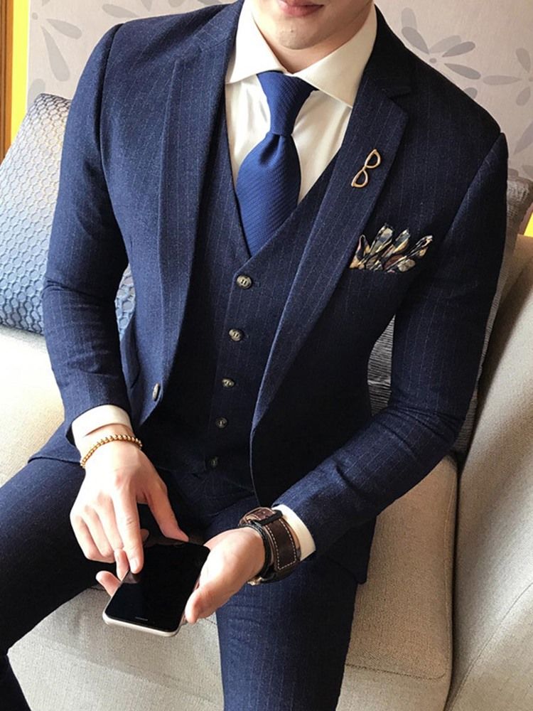Revers Slim Fit Enfärgad Bröllop I Tre Delar Herrdräkter