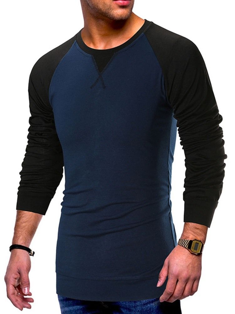 Round Neck Casual Color Block Pullover Långärmad Herr-t-shirt