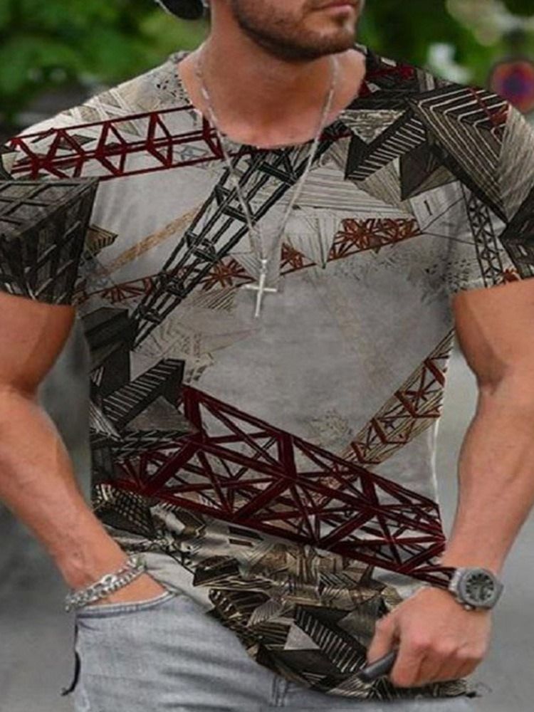 Round Neck Print Casual Slim Pullover Vintage T-shirt Herr