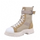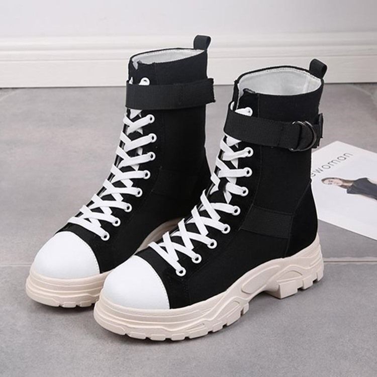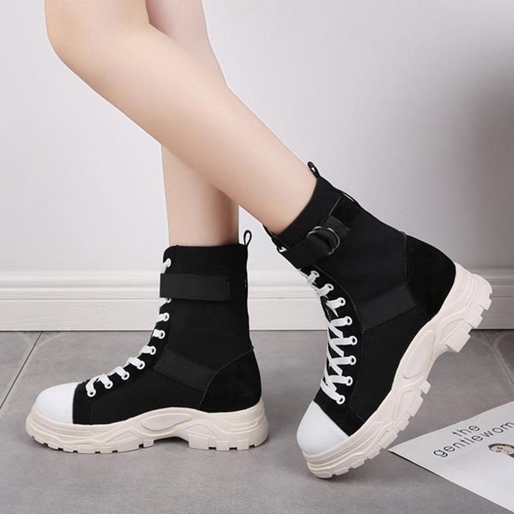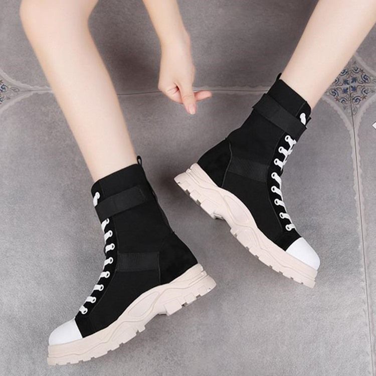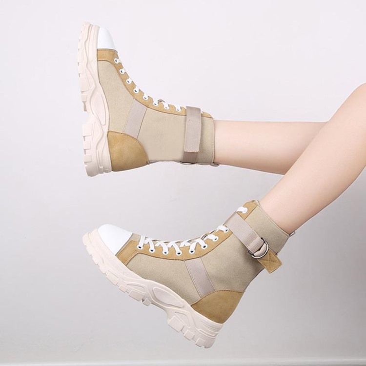 Round Toe Patchwork Lace-up Front Dam Stövlar