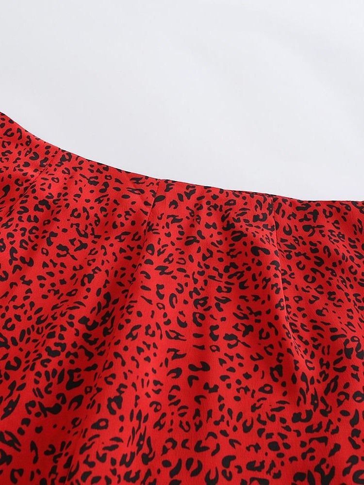 Ruffles Leopard Falbala Mid-calf Kjol För Kvinnor