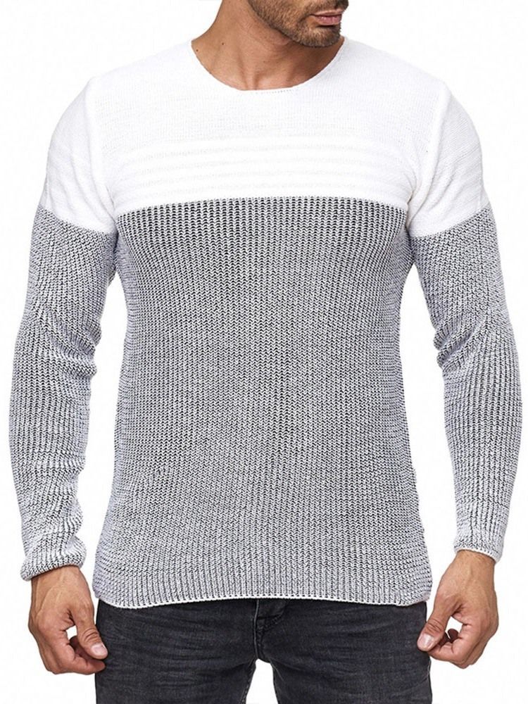 Rund Hals Färgblock Standard Herr Slim Slim Tröja