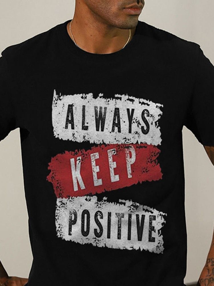 Rundhalsad Bokstavstryck Slim Herr T-shirt Med Kort Ärm
