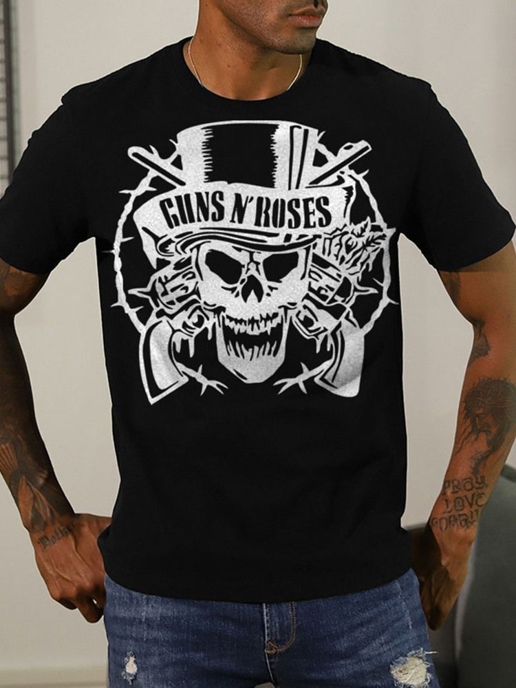 Rundhalsat Tryck Letter T-shirt Herr