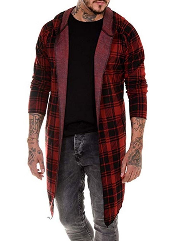Rutig Midjelång Singelomslagen Trenchcoat För Män