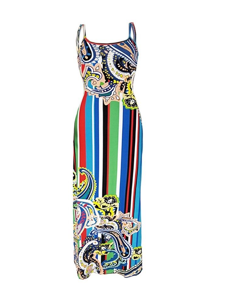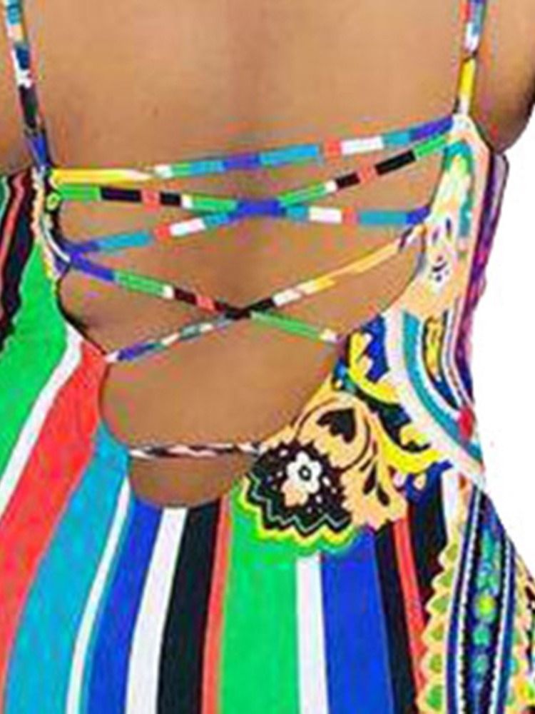 Rygglösa Ärmlösa Golvlånga Geometriska Afrikanska Modeklänning För Kvinnor