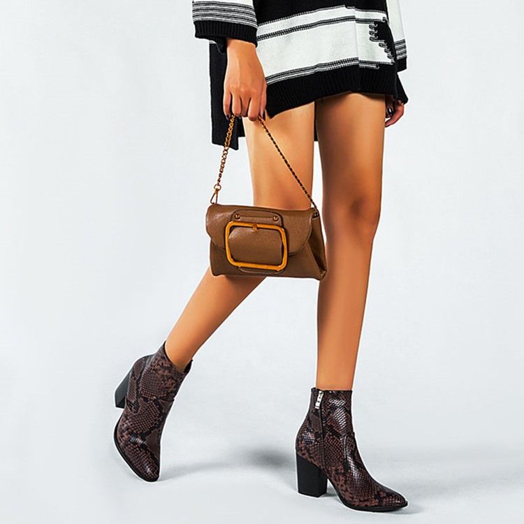 Serpentine Chunky Heel Pointed Toe Side Zipper Damskor