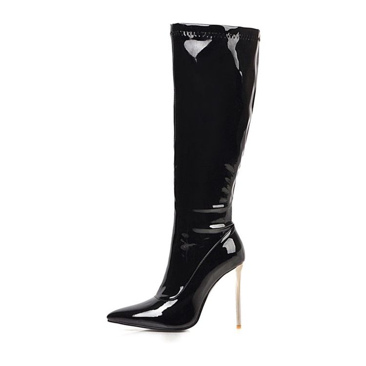 Sidokläder Stilettklack Med Spetsiga Tå Kvinnors Knästövlar