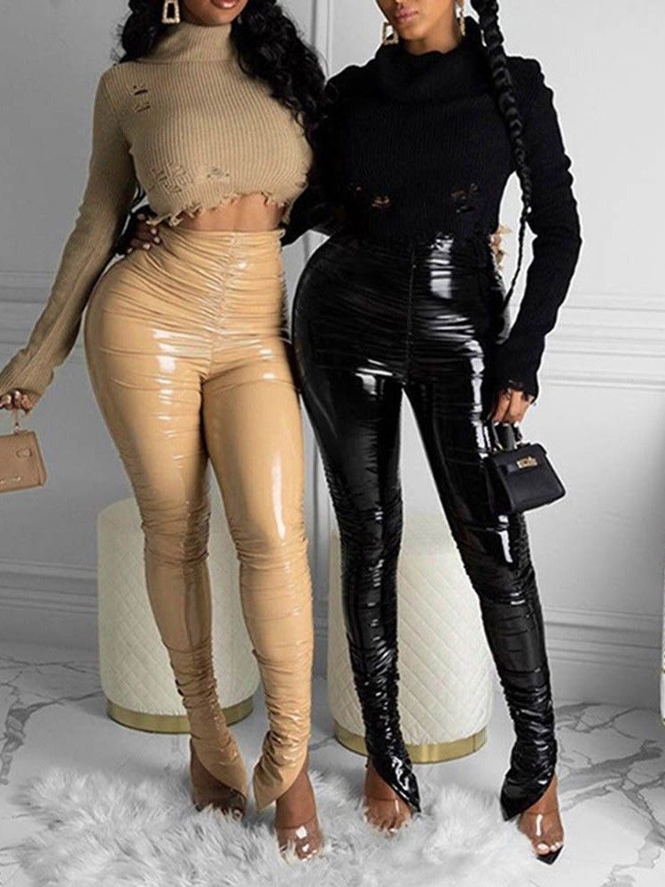 Skinny Plain Pleated Pencil Pants High Waist Women's Casual Pants