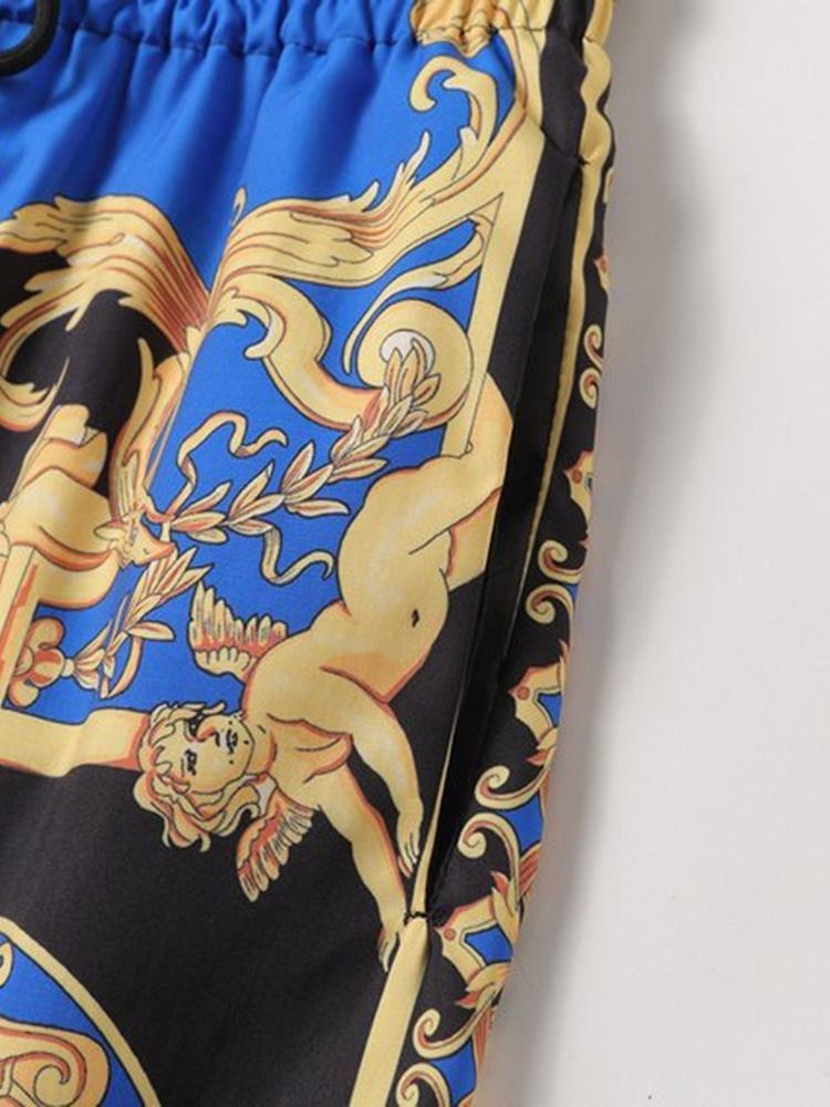 Skriv Ut Tunna Blommor Med Snörning I Europeiska Shorts För Män