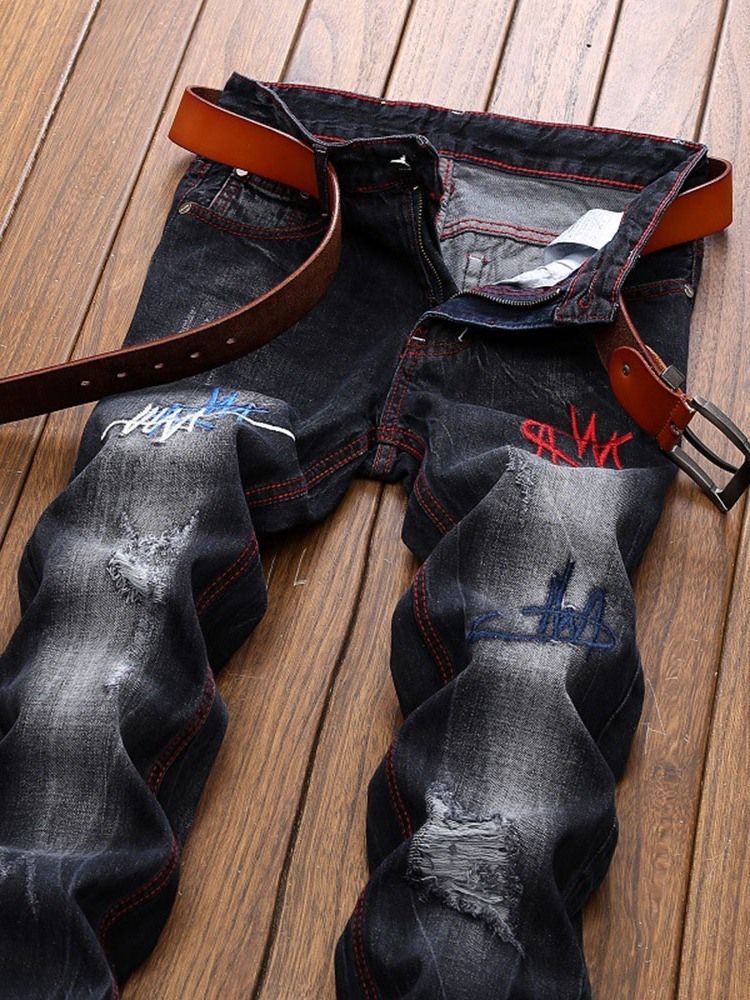 Slitna Raka Midja Midja Europeiska Jeans För Män