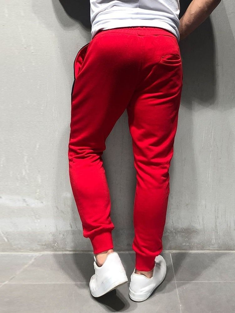 Snörning Färgblock Sports Mid Waist Mens Casual Byxor