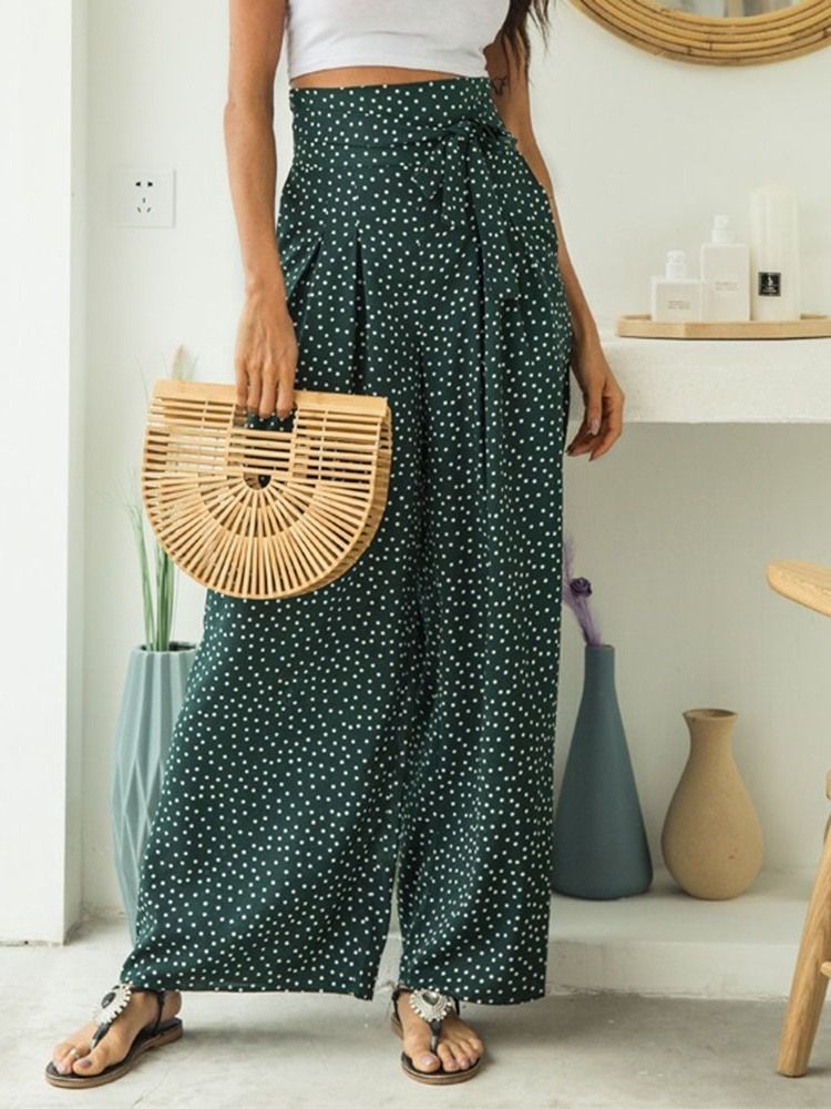 Snörning För Prickar För Kvinnor Lösa Byxor Med Hög Midja
