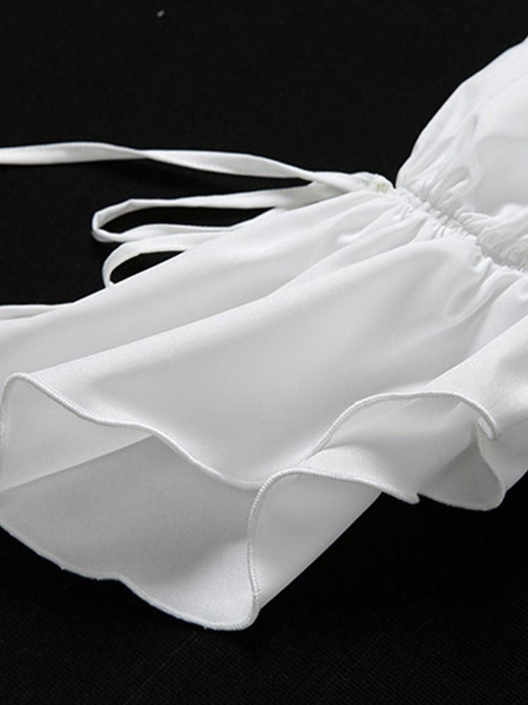 Snörning Plain Off Shoulder Kort Långärmad Vit Blus För Kvinnor
